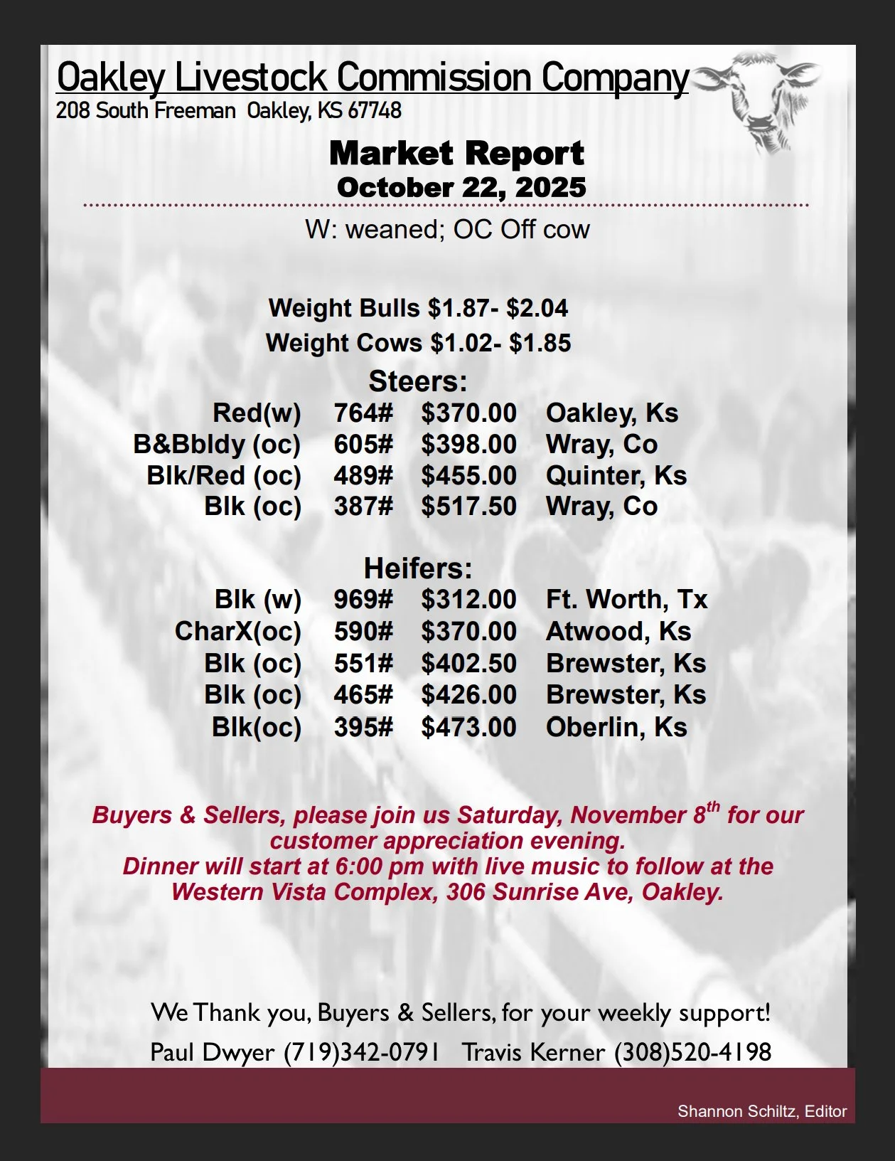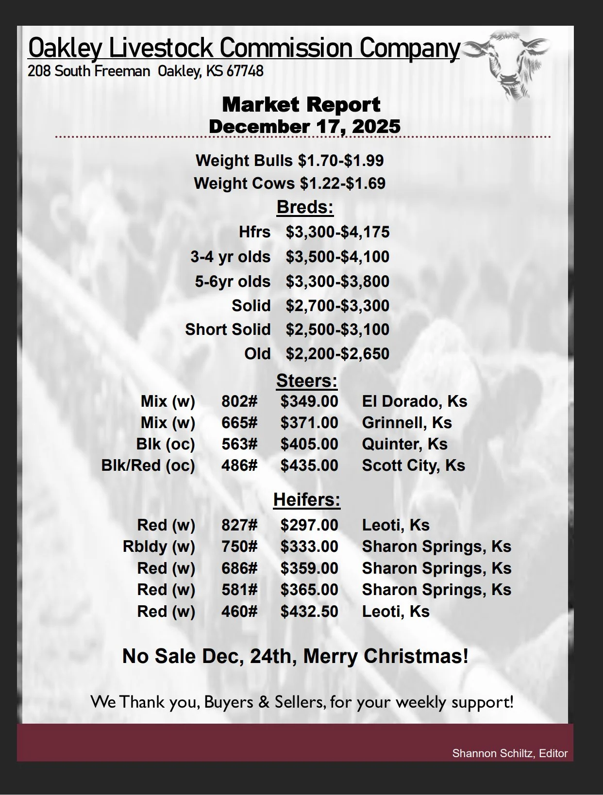 Sales of Feeder Cattle are reported at local auctions. Information is collected and reports are listed by state.